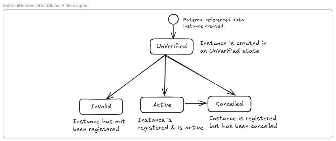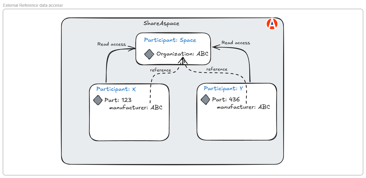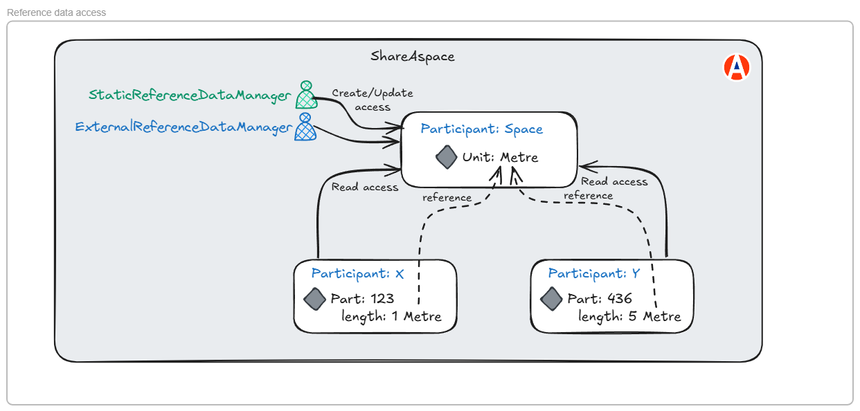 Consequently, the ownership of external reference data is transferred to the space participant as soon as it is created as shown below.