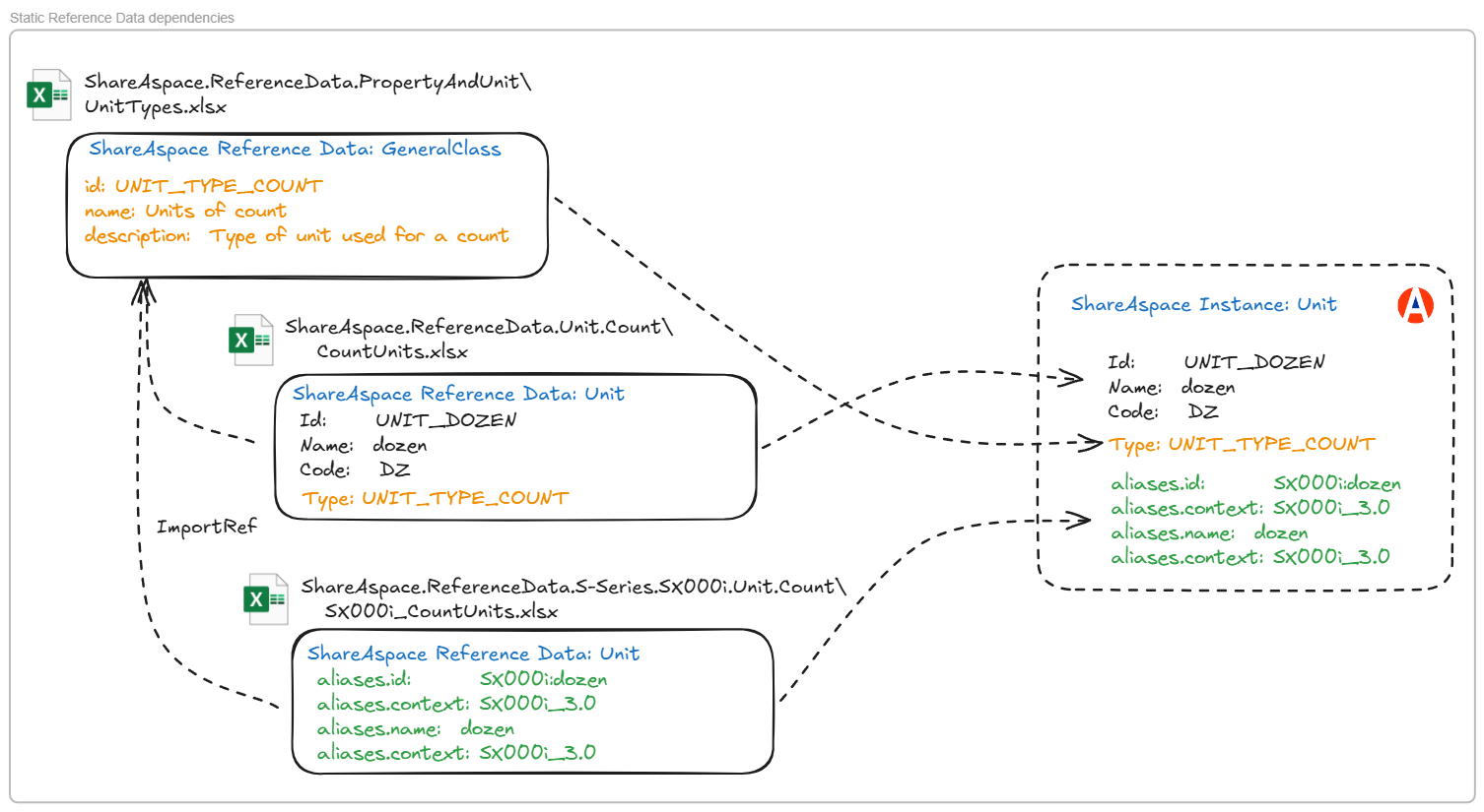 Each module references a reference data folder - a reference data package. All Excel files in the folder are imported. E.g. The module: ShareAspace.ReferenceData.PropertyAndUnit