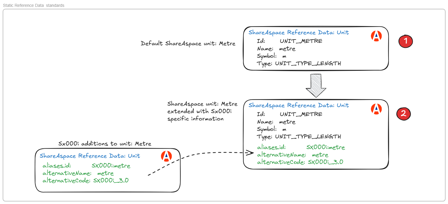 For example, a unit Metre is defined by the SI standard. It is also defined in the SX000i standards where the code MR is used in data exchanges.